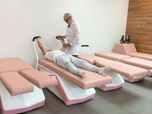 Именно крупные суставы являются мишенью, именно с крестцово-копчикового отдела, как правило, развивается болезнь. Для этого движения сконструирован один из столов, который поочередно поднимает ноги человека вверх-вниз в вертикальной проекции движения, адресно затрагивая ягодичные мышцы и соответственно разрабатывая крестцово-копчиковый отдел.